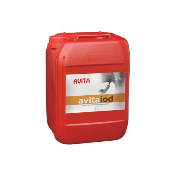 Preparat de îngrijire pe bază de iod pentru igiena mameloanelor după muls. AvitaIod este o combinație de iod activ – 2.500 ppm, acid salicilic și agenți hidratanți pentru uger. Datorită compoziției perfect selectate, produsul rămâne pe uger pentru o perioadă lungă de timp, creând un strat protector pe mameloană, protejându-l împotriva influențelor nefavorabile ale mediului și uscându-l, oferind în același timp pielii elasticitate. Produsul este gata de utilizare.