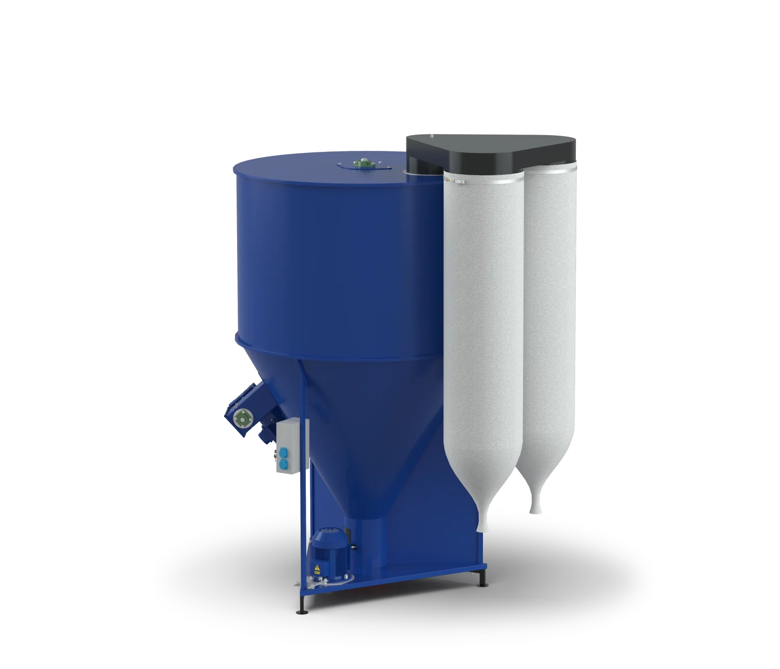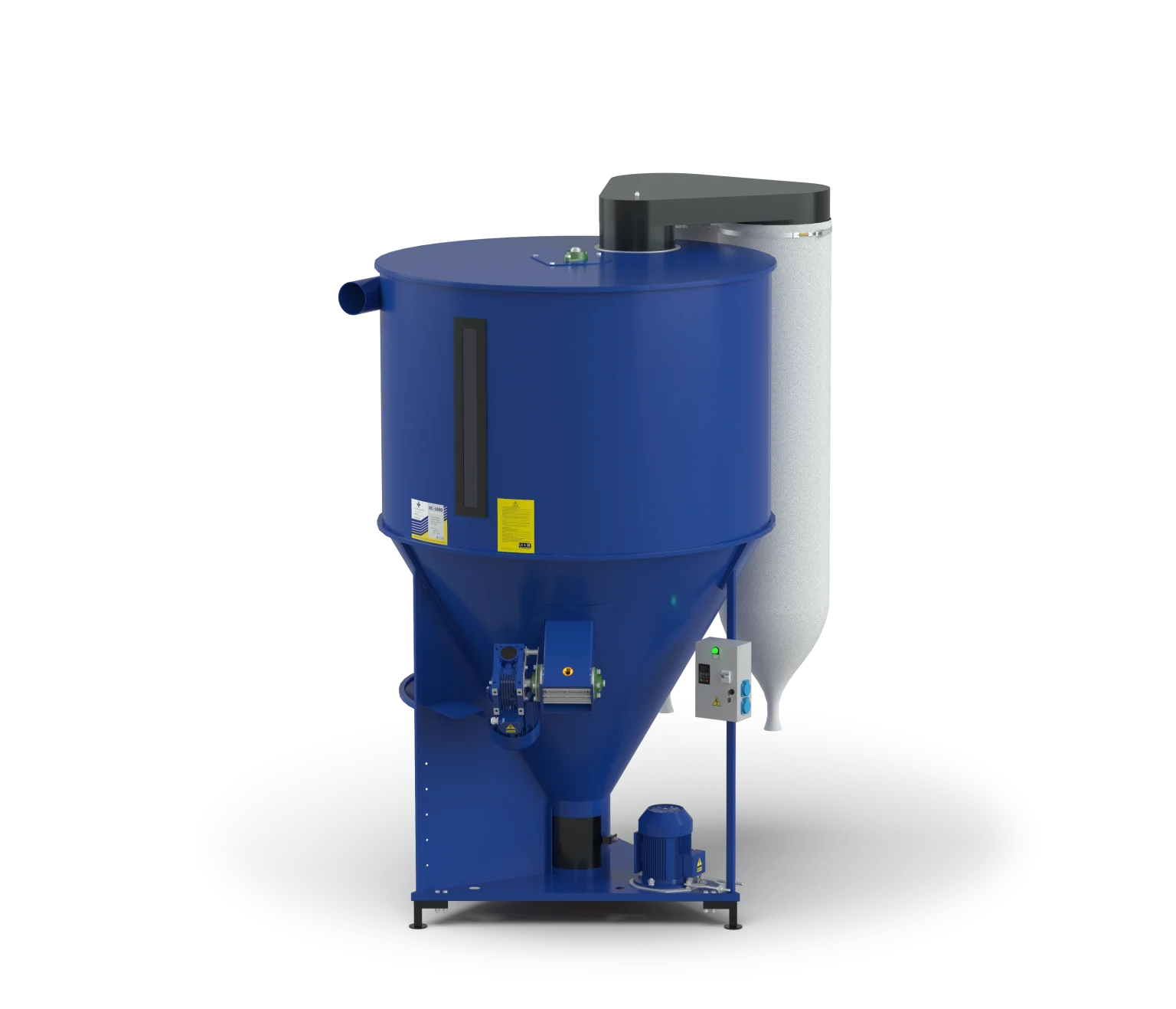 - Fereastră pentru prelevarea probelor și orificiu de descărcare cu clapetă pentru saci sau linii tehnologice ulterioare;
