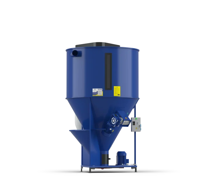 - Amestecare eficientă realizată printr-un șnec vertical care creează un flux continuu al produsului de jos în sus;