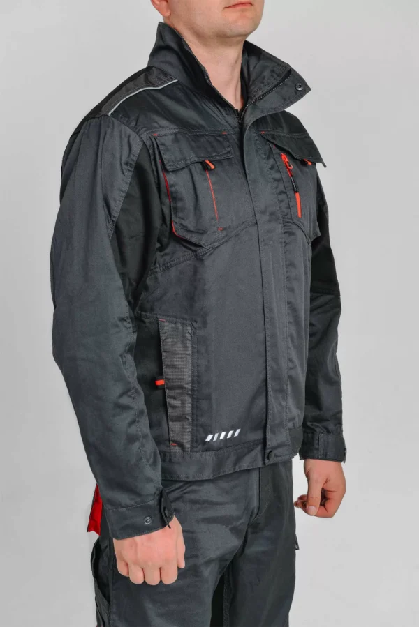 Jacheta de lucru, 60% bumbac / 40% poliester (twill) culoarea sur/negru/rosu